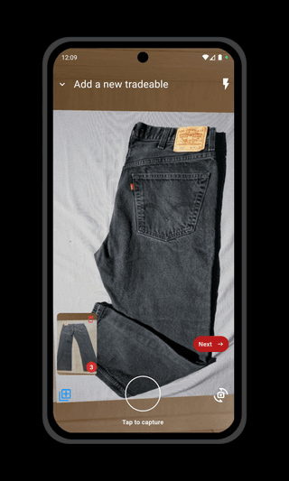 Capture your outfit using our camera. This ascertains that the item is indeed in your possession.