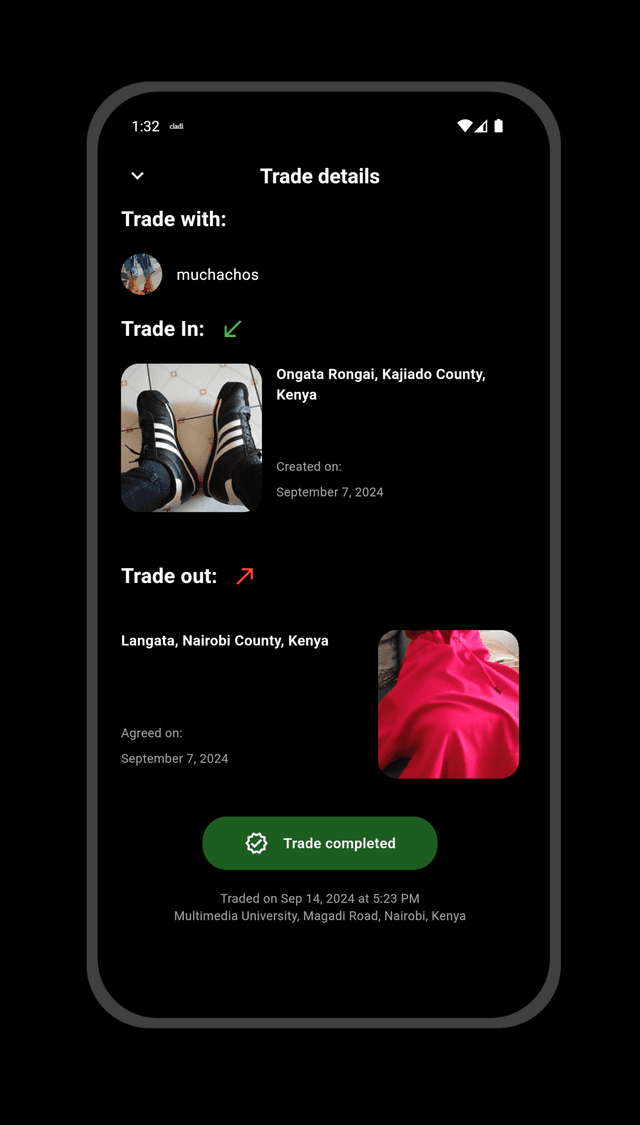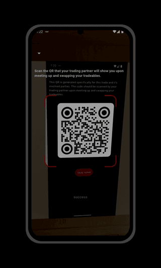 After meeting up and are satisfied with what was agreed upon, one will scan the qr code from another to digitally swap your items from your closets.