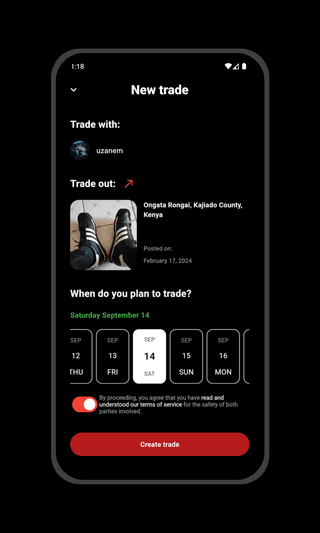 Plan your trade in detail with your trading partner. Agree on your meeting spot, exact time or simply connect with the community.